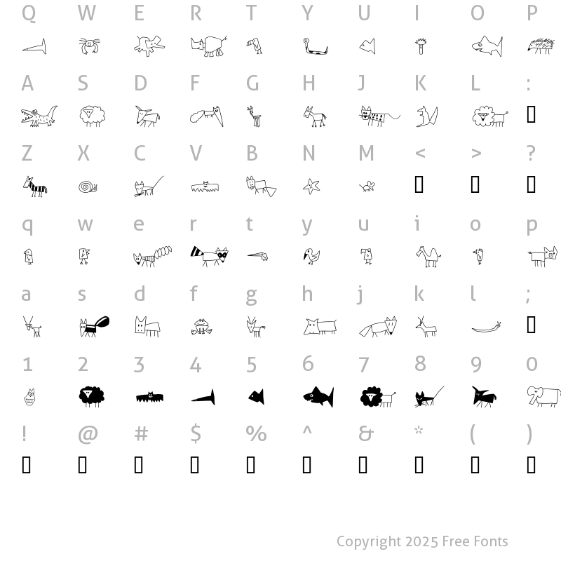 Childs Play Animals is a Animals TrueType Font. It has been downloaded 3 times. 0 users have given the font a rating of 0.0 out of 5. You can find more information about Childs Play Animals and it's character map in the sections below. Please verify that you're a human to download the font for free.